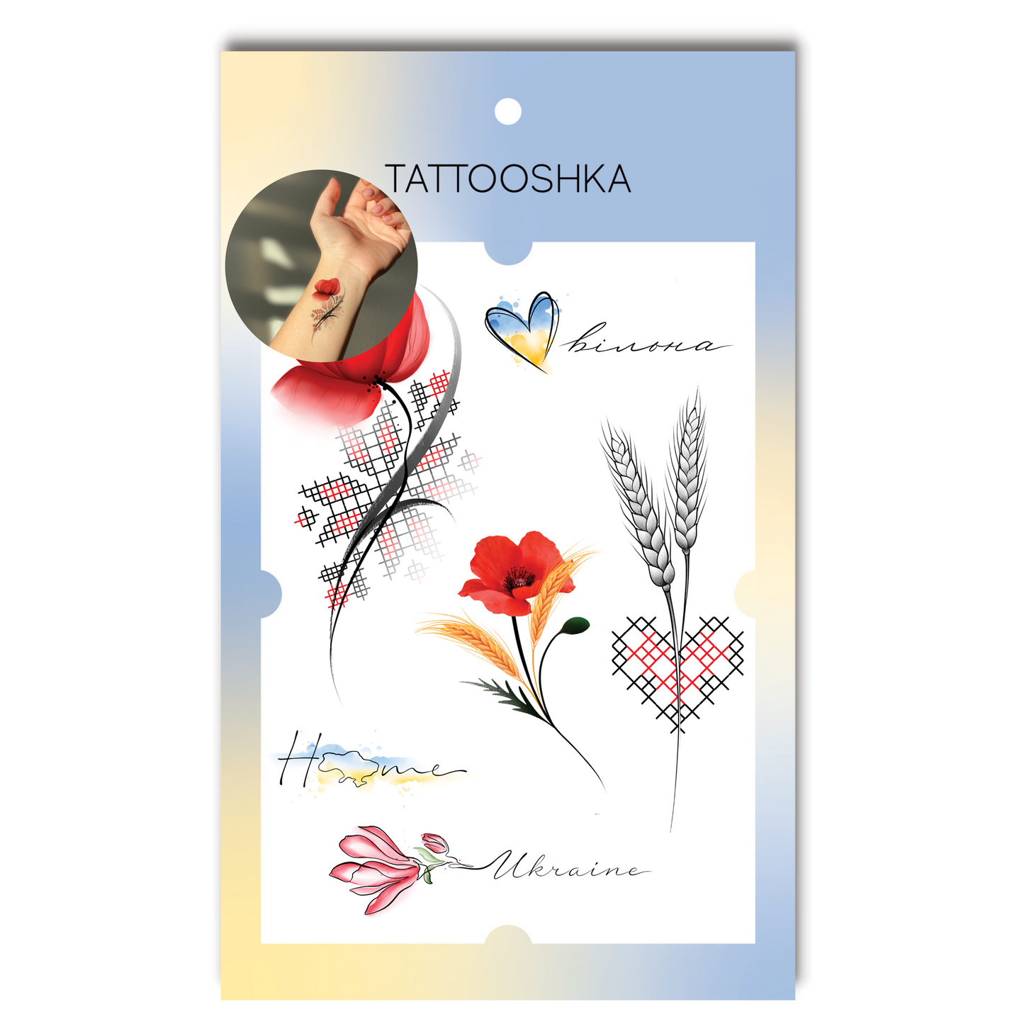 Discover the allure of Tattooshka's temporary tattoos, crafted by talented Ukrainian designers. These realistic and waterproof tattoos offer the perfect solution for those who desire the look of real tattoos without the permanent commitment. Experience a touch of Ukrainian fashion with an easy application process that delivers up to 7 days of striking style.