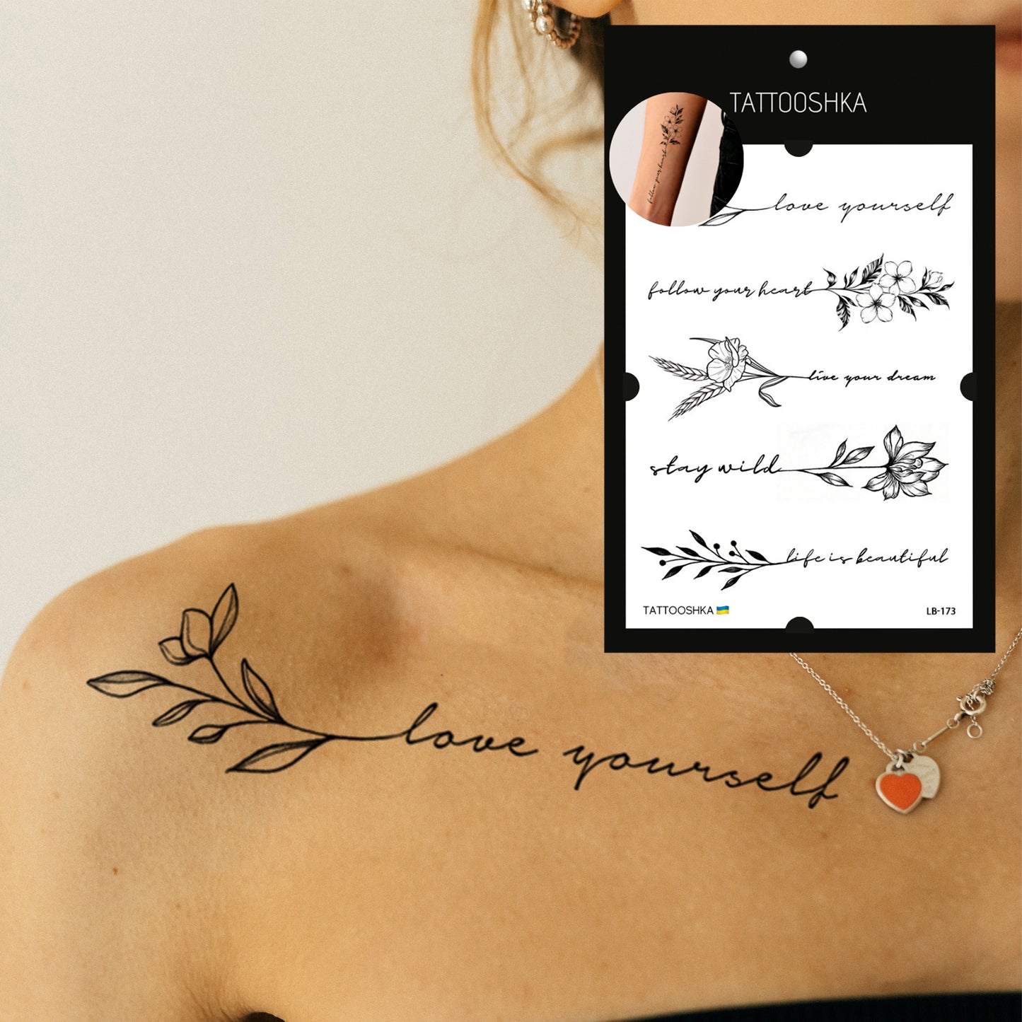 Discover the allure of Tattooshka's temporary tattoos, crafted by talented Ukrainian designers. These realistic and waterproof tattoos offer the perfect solution for those who desire the look of real tattoos without the permanent commitment. Experience a touch of Ukrainian fashion with an easy application process that delivers up to 7 days of striking style.